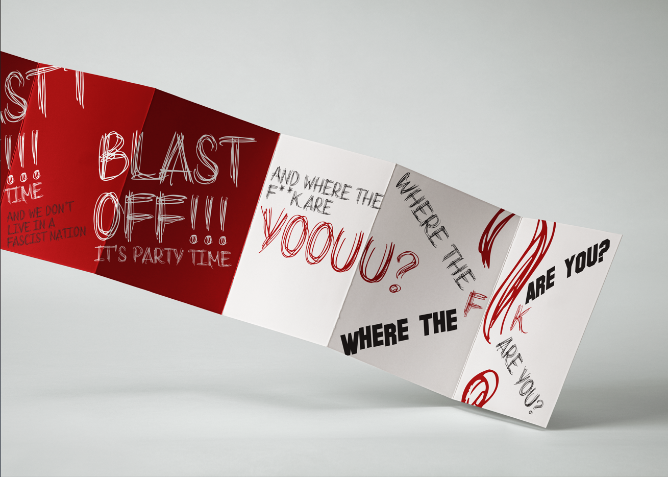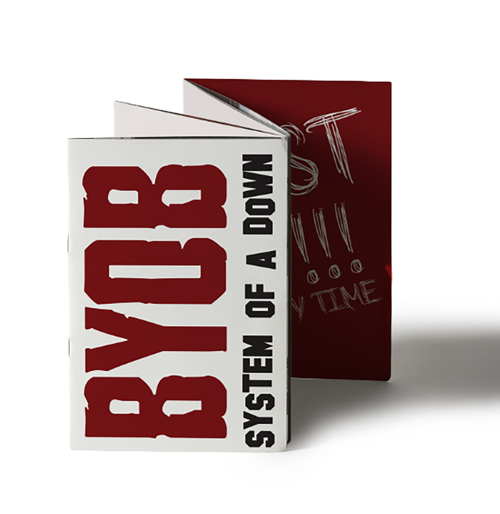 The goal of this project was to design a dynamic lyric accordion book for System of a Down's "BYOB," translating the song's urgent energy and dual vocal performances into a physical, visual experience.